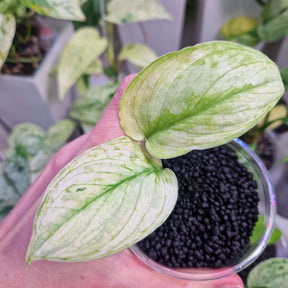 Prawdziwa perła wśród roślin kolekcjonerskich! Jej liście ozdobione są wyjątkową, miętową variegacją w odcieniach jasnej, chłodnej zieleni z delikatnymi kremowymi przejściami, która przyciąga wzrok i dodaje elegancji każdemu wnętrzu. Ta roślina nie tylko zachwyca wyglądem, ale również jest łatwa w pielęgnacji, dzięki czemu idealnie sprawdzi się zarówno u początkujących, jak i doświadczonych miłośników roślin.